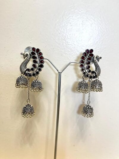 This silver oxidised earring gives a glamorous look, can be worn with all kind of ethnic Outfits.
