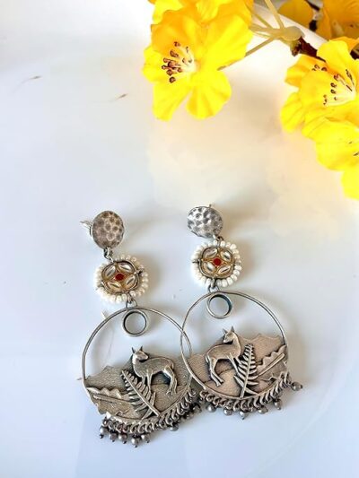 Be the first to review “Vintage Silver Deer Dangle Earrings, Tribal Design with Pearl Accents, Antique Finish” Cancel reply