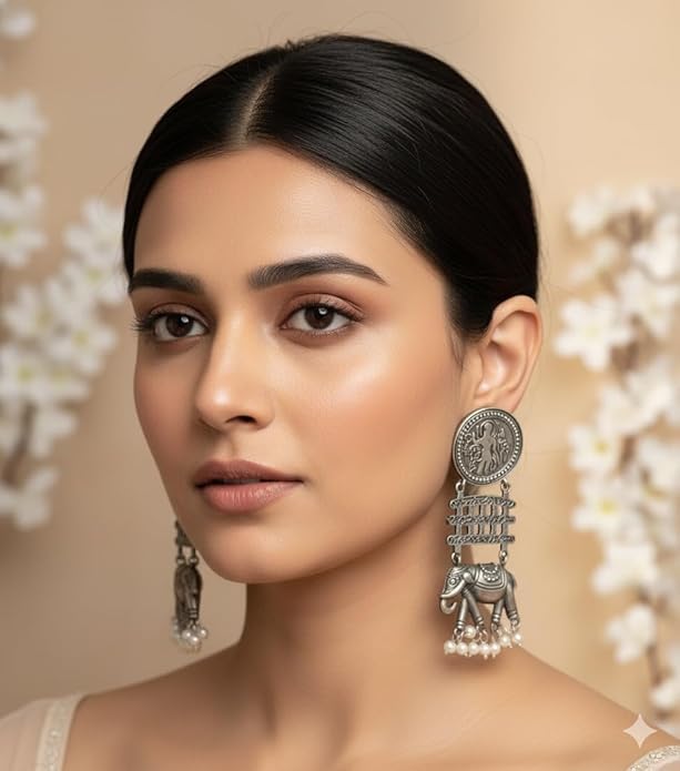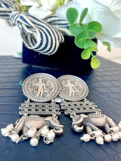 - MATERIAL & FINISH: Crafted from oxidised silver-plated metal with an antique finish that adds a vintage charm to the earrings