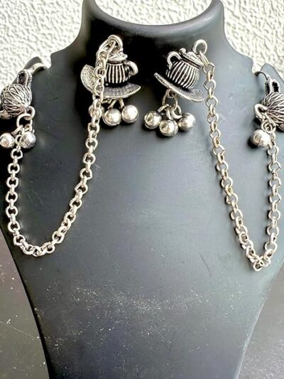 Be the first to review “Vintage Tea Set Design Ear Cuff Chain Earrings, Antique Silver Plated, Teapot Charm with Dangling Bells, Traditional Indian Style” Cancel reply